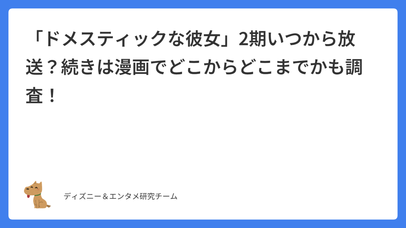 「ドメスティックな彼女」2期いつから放送?続きは漫画でどこからどこまでかも調査!