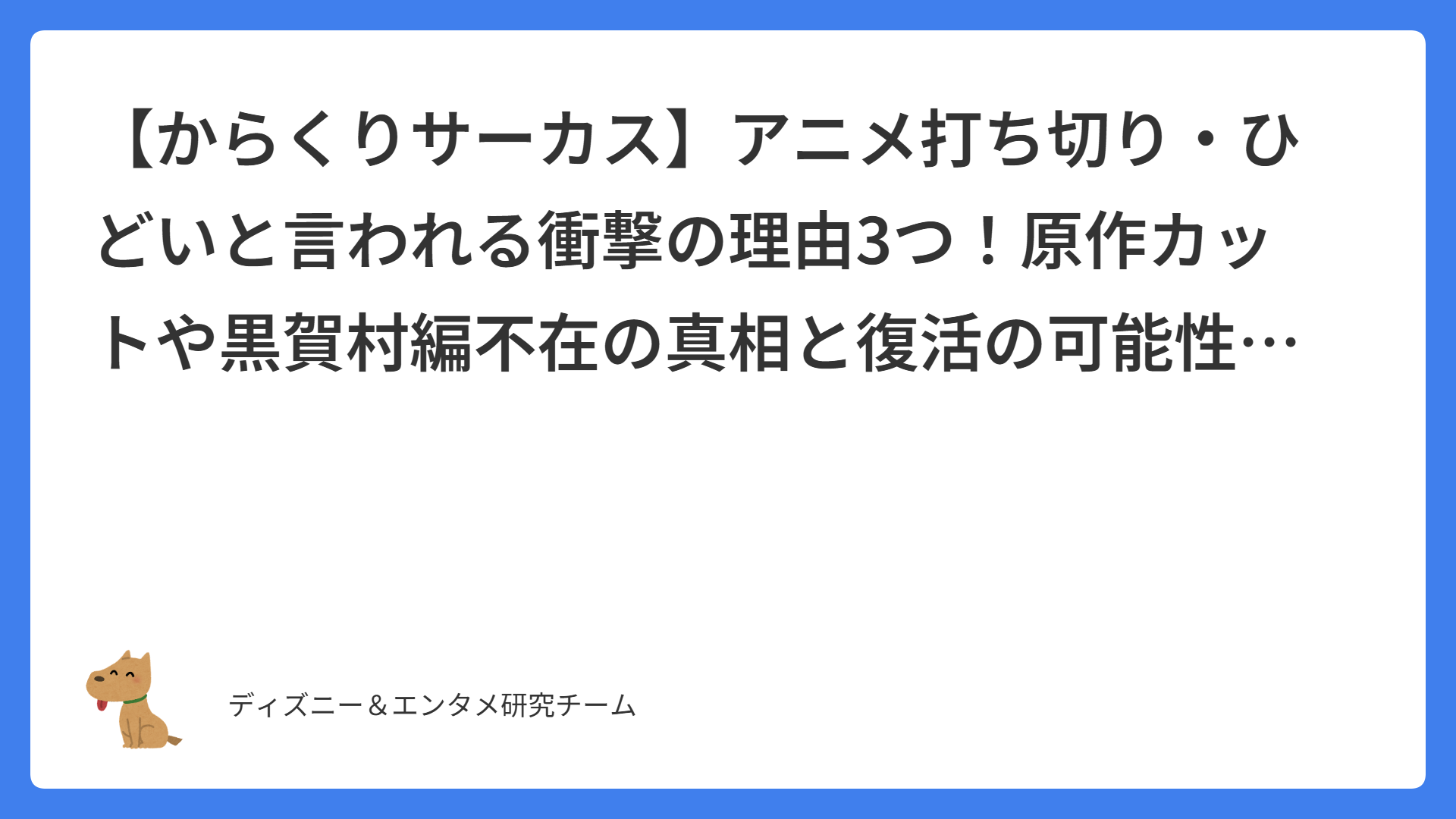 【からくりサーカス】アニメ打ち切り・ひどいと言われる衝撃の理由3つ!原作カットや黒賀村編不在の真相と復活の可能性を2025年最新情報で徹底解説 2025.10.05 アニメ&漫画 kazu3 ディズニー&エンタメワールド