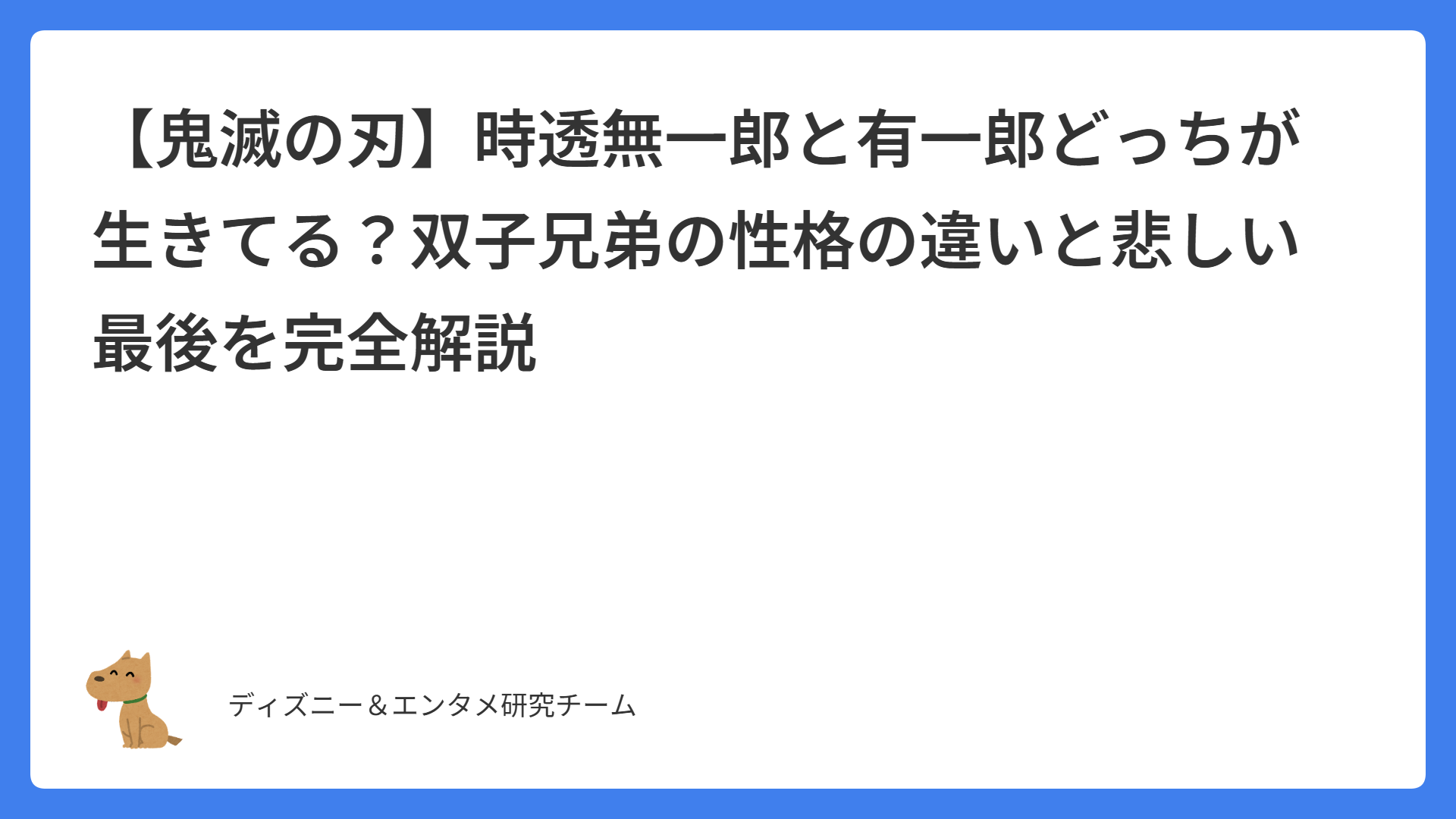 今回は超人気マンガ『鬼滅の刃』より、無一郎と有一郎について考察をしてきました。