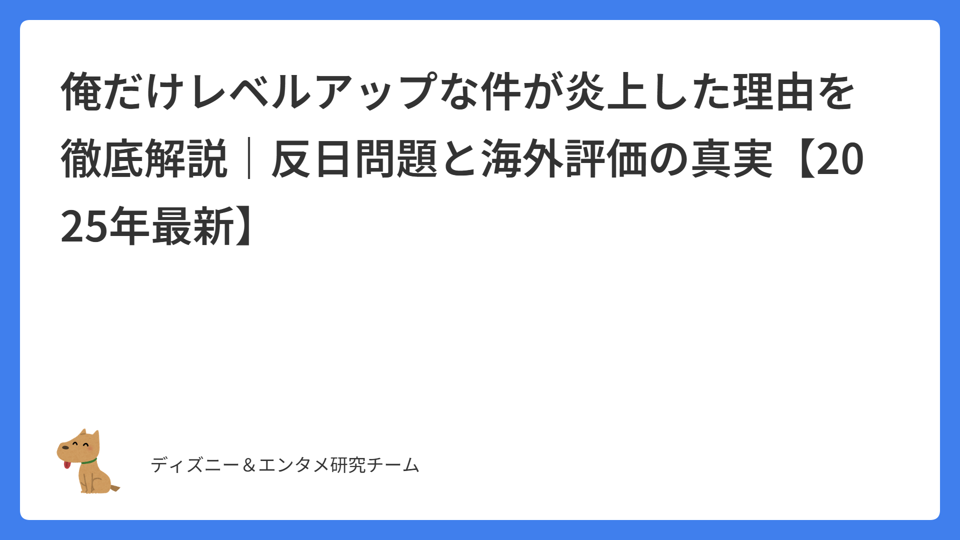俺だけレベルアップな件が炎上した理由を徹底解説|反日問題と海外評価の真実【2025年最新】