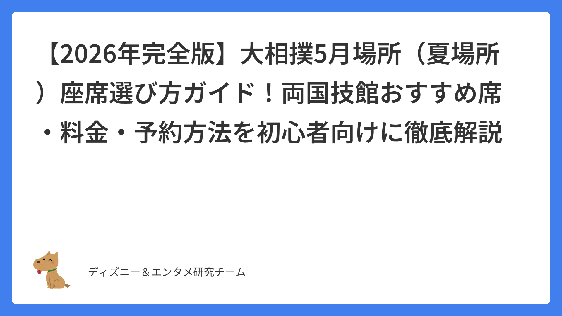【2026年完全版】大相撲5月場所(夏場所)座席選び方ガイド!両国技館おすすめ席・料金・予約方法を初心者向けに徹底解説